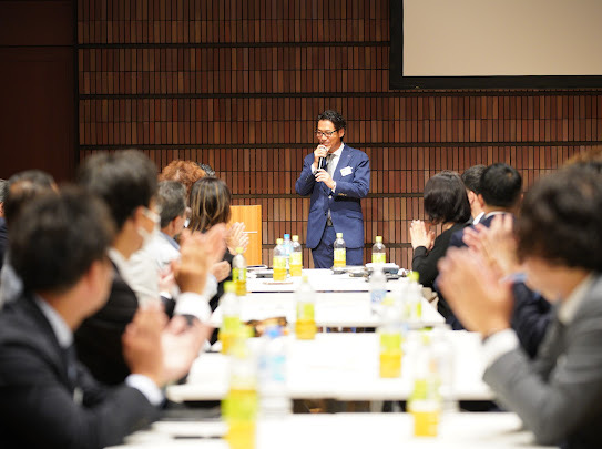 5月例会では、株式会社赤鹿地所、赤鹿レクチャラーをお招きして、現在、そして今後の人口・新築分譲住宅市場が縮小する経営環境の中で『不動産価値創造企業』として難しい課題に挑戦し、経営革新されてきたその秘訣を、この10年間の歩みと共に